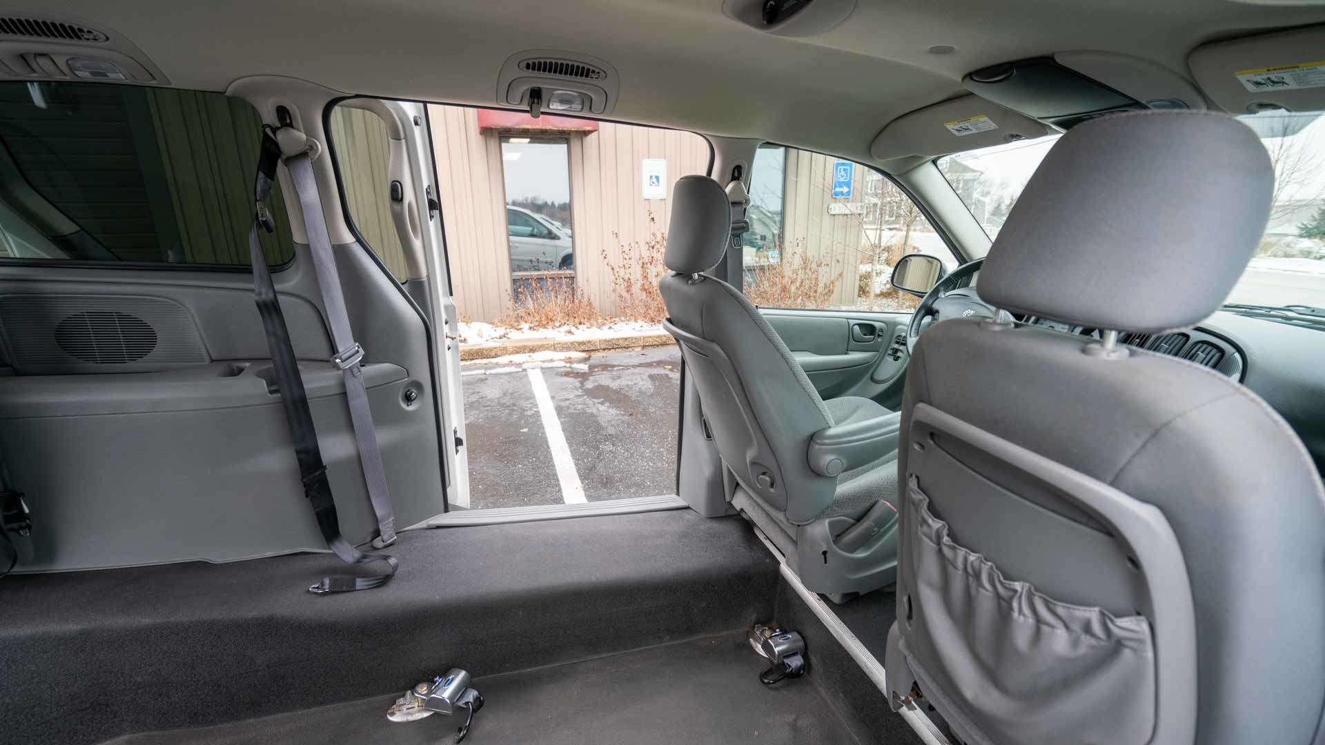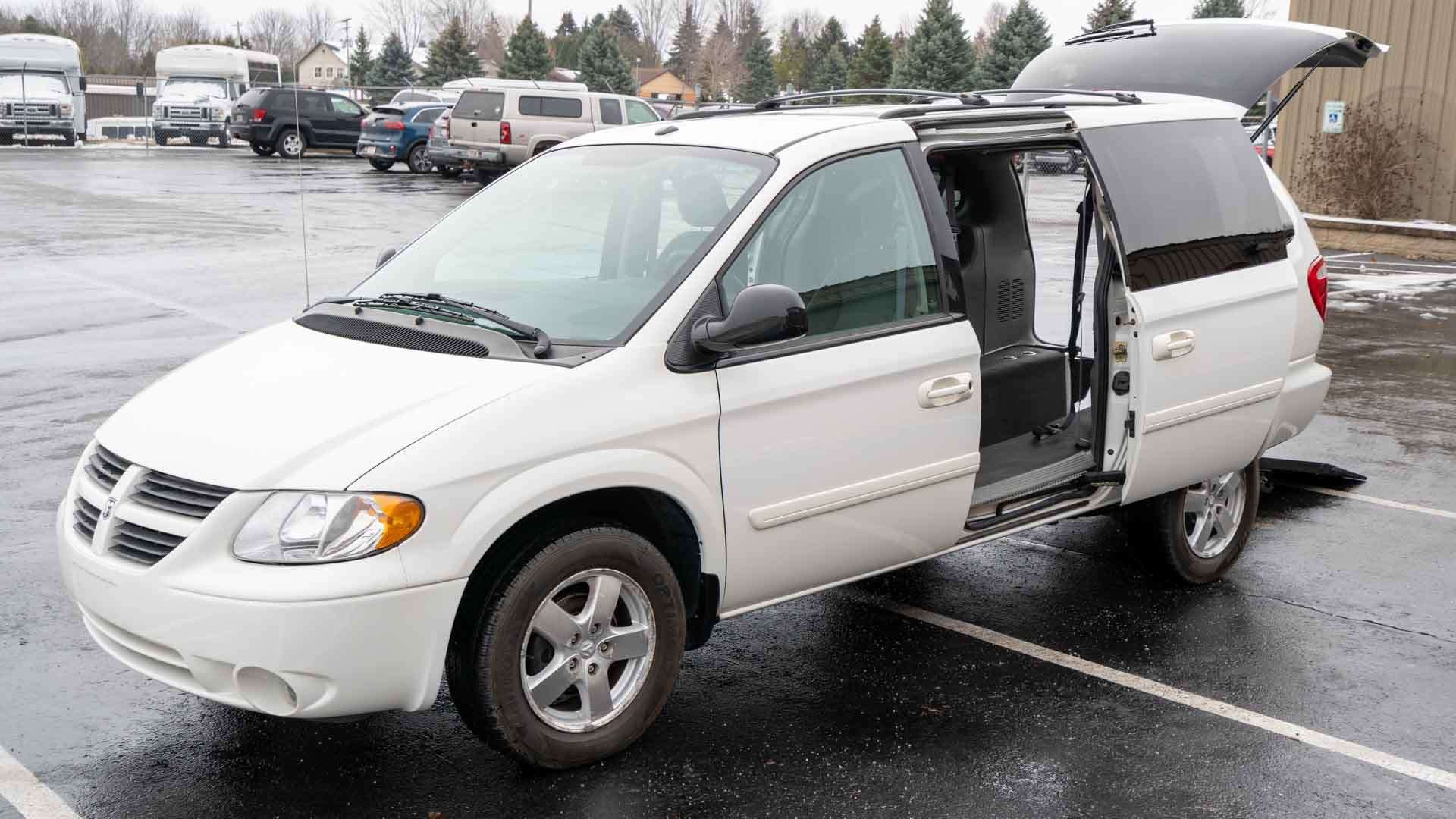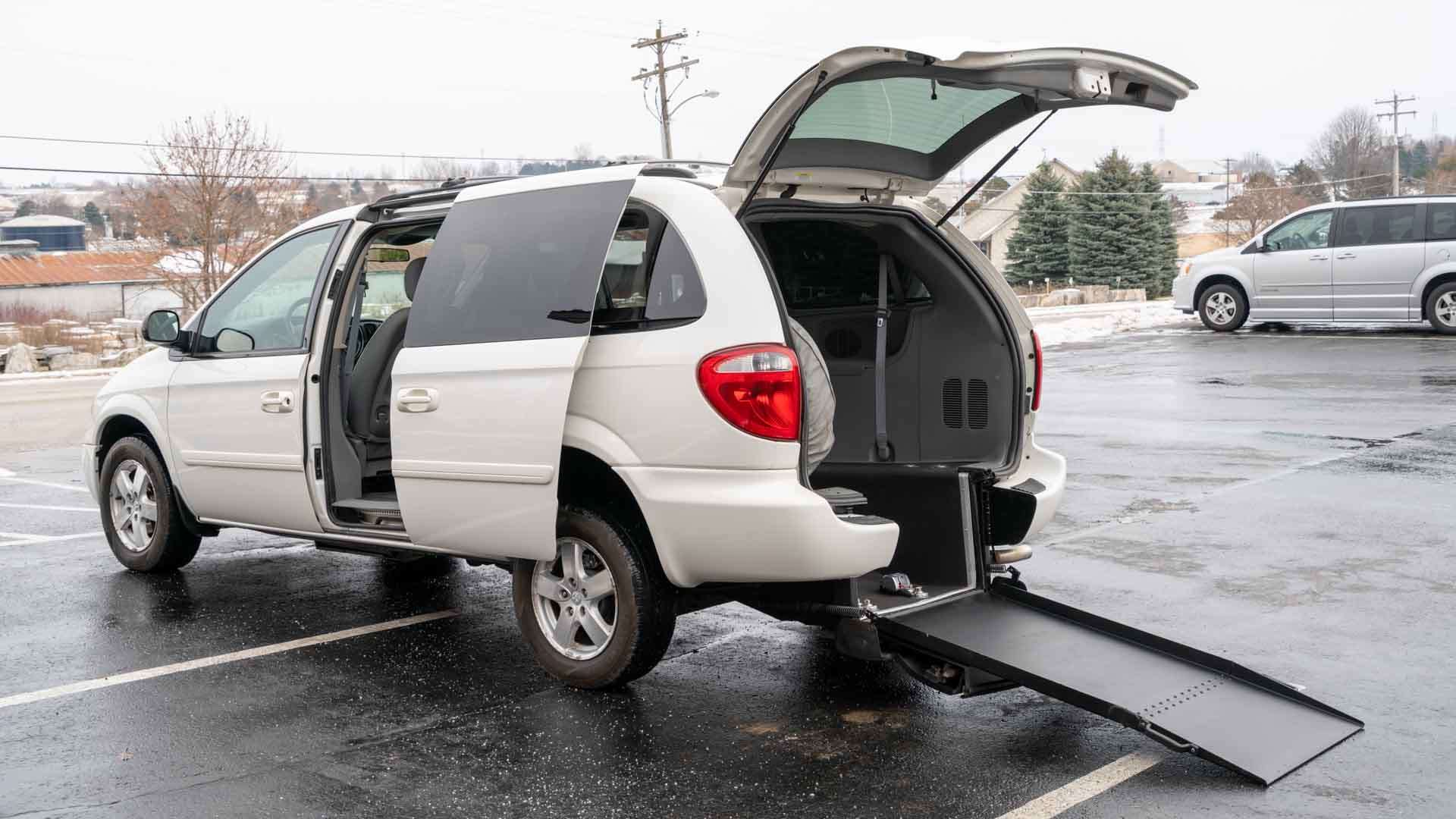 Used white 2006 Dodge Grand Caravan AutoVan rear-entry wheelchair van has rear-entry wheelchair ramp for sale in Wisconsin near you. A&J Mobility has five locations in Wisconsin serving the midwest. Some people still call it a disability van or a handicap van; but, whatever you call it, you can always say, "A&J Mobility has a trusted wheelchair van for sale near me."
