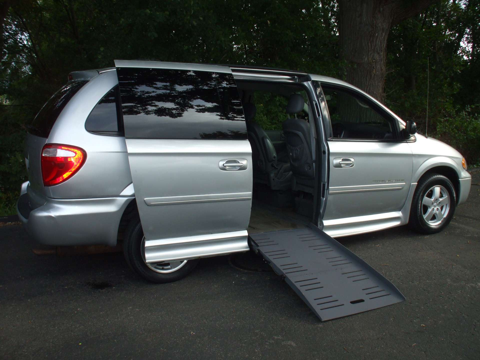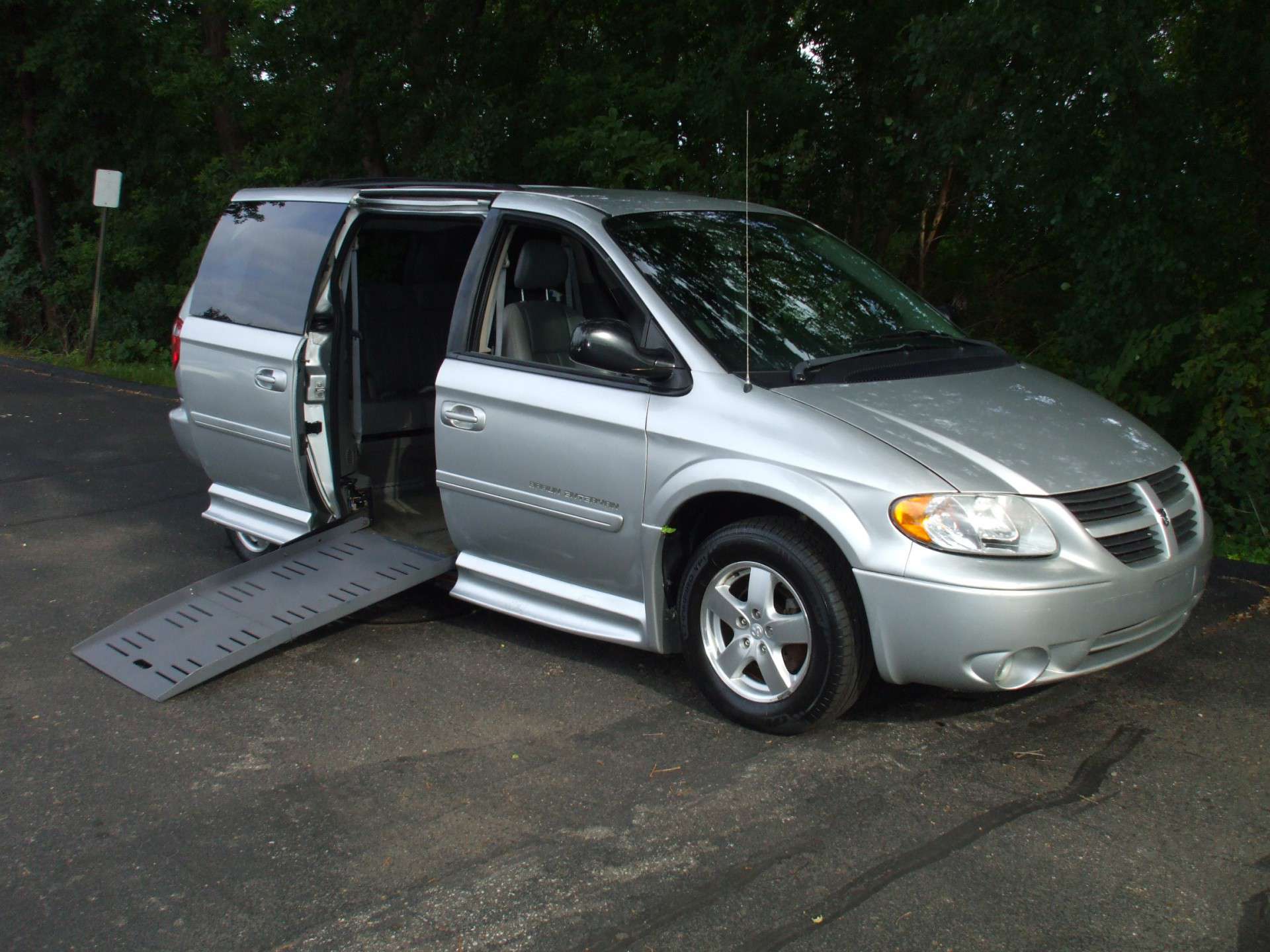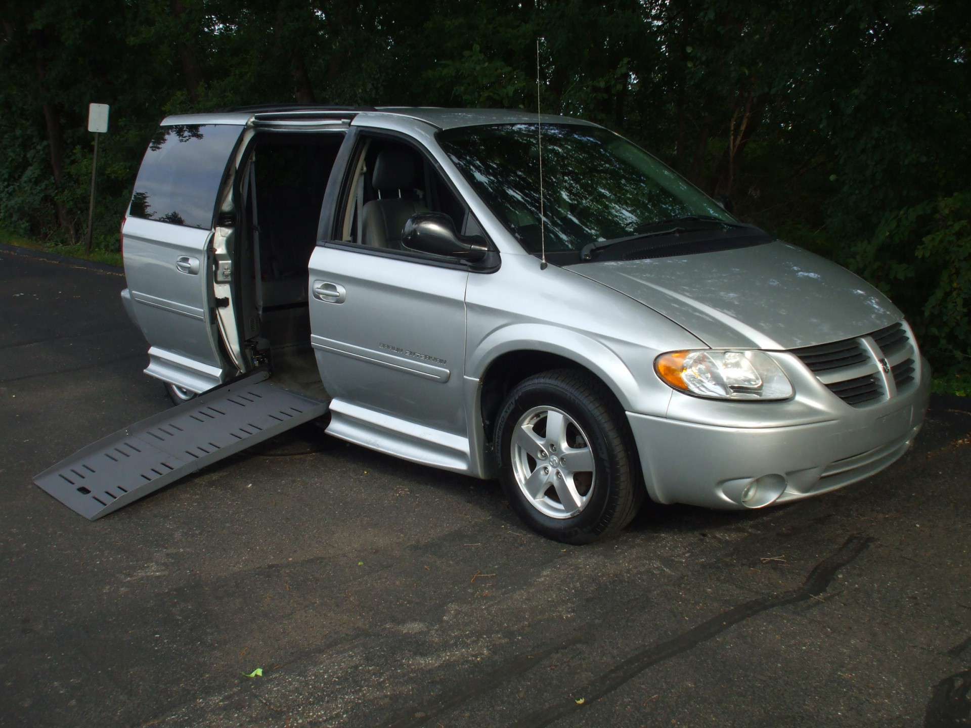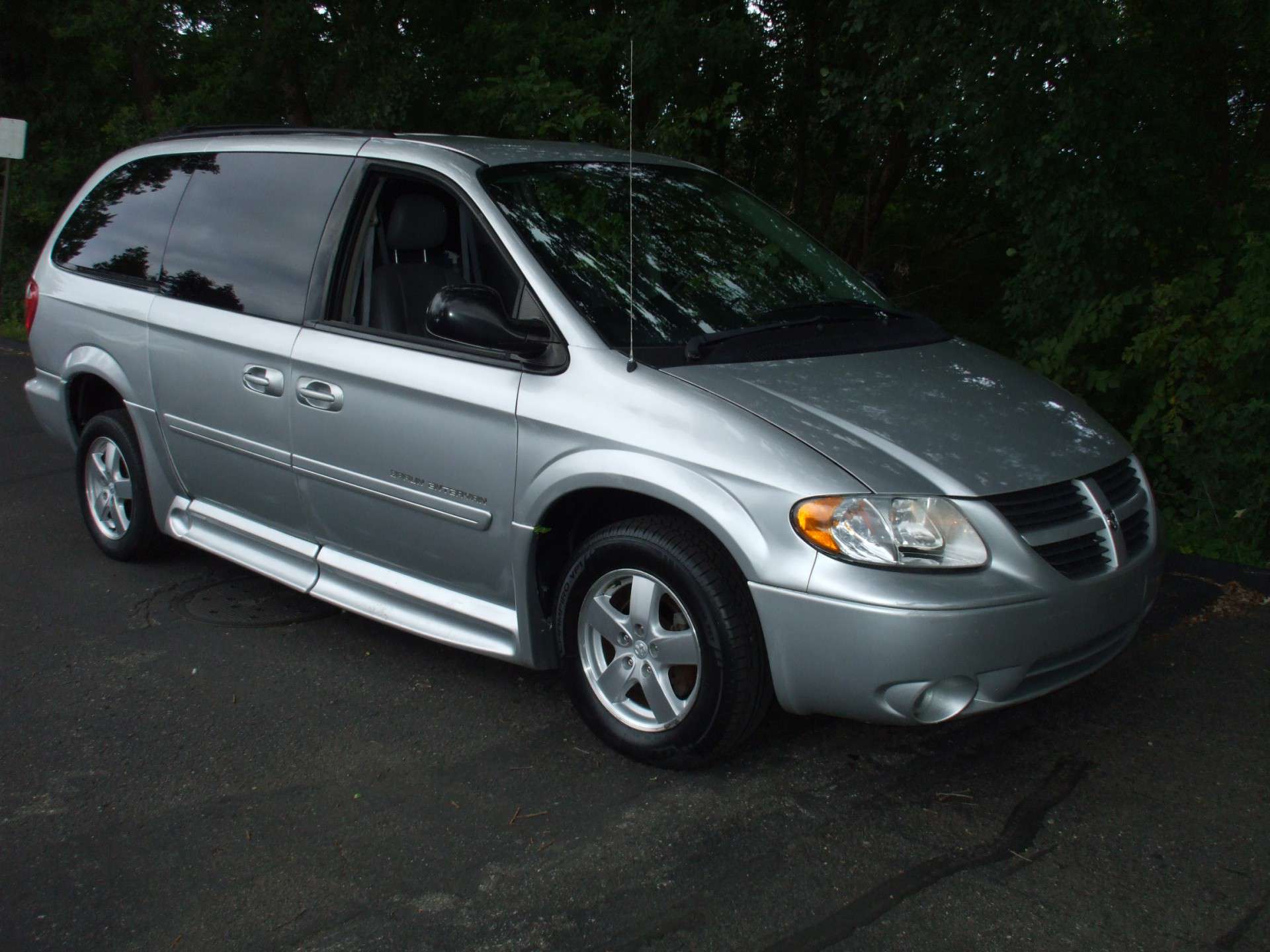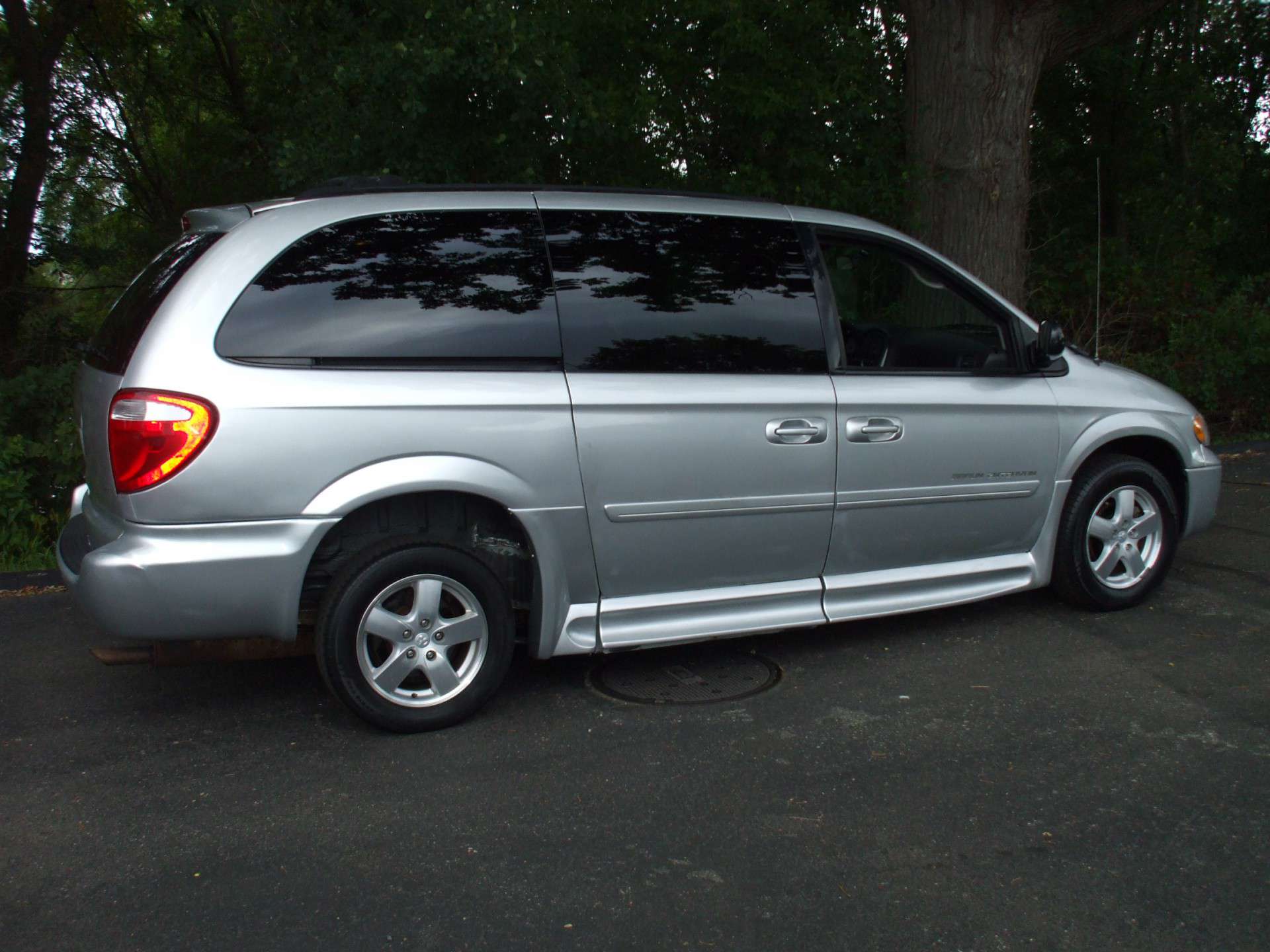 2007 Dodge Caravan SXT wheelchair van for sale with a BraunAbility Entervan II wheelchair conversion. Power side fold out wheelchair ramp, kneel system, retractor tie downs, remote controls, leather seats, aluminum wheels and newer tires. This is a nice clean van for the money