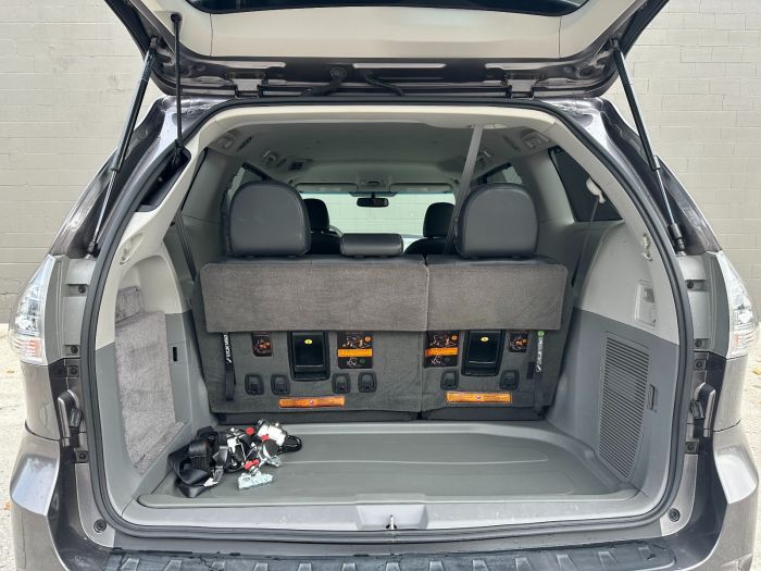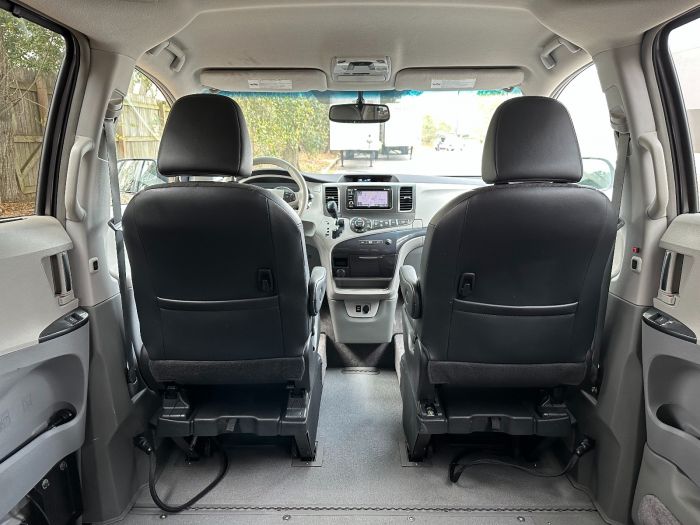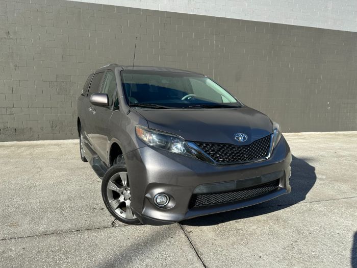 You are viewing a 2014 Toyota Sienna SE painted in Predawn Gray. This is a preowned Toyota wheelchair van that is equipped with a VMI Northstar conversion. The Northstar conversion features a power operated in-floor ramp that deploys at the passenger sliding doorway at the touch of a button, and stows the ramp under the floor when not in use. The conversion also features a kneel system that lowers the van to reduce the angle of the ramp. Interior switches and wheelchair securement are also included as part of this conversion. Contact us if you would like to know more about this or any other wheelchair accessible vehicles for sale at PATSONBENS MOBILITY VANS AIDS.